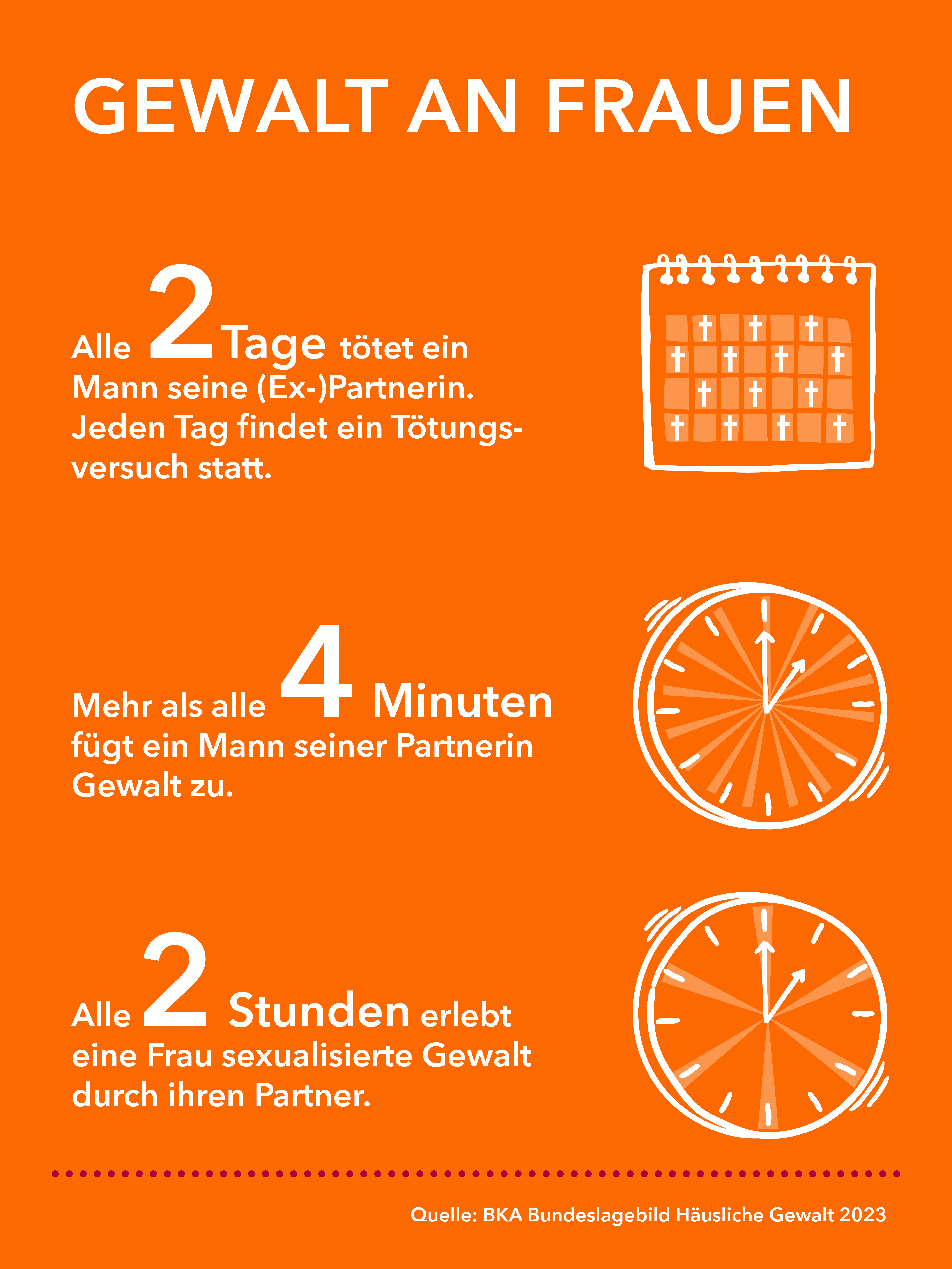 Start ist der 25. November, der Internationale Tag zur Beseitigung der Gewalt an Frauen. Er schließt sich nahtlos an die „16 Days of Activism” von UN Women an. Wir setzen uns auch über dem Kampagnenzeitraum kontinuierlich für dieses Thema ein, klären auf und verschaffen Betroffenen Gehör.