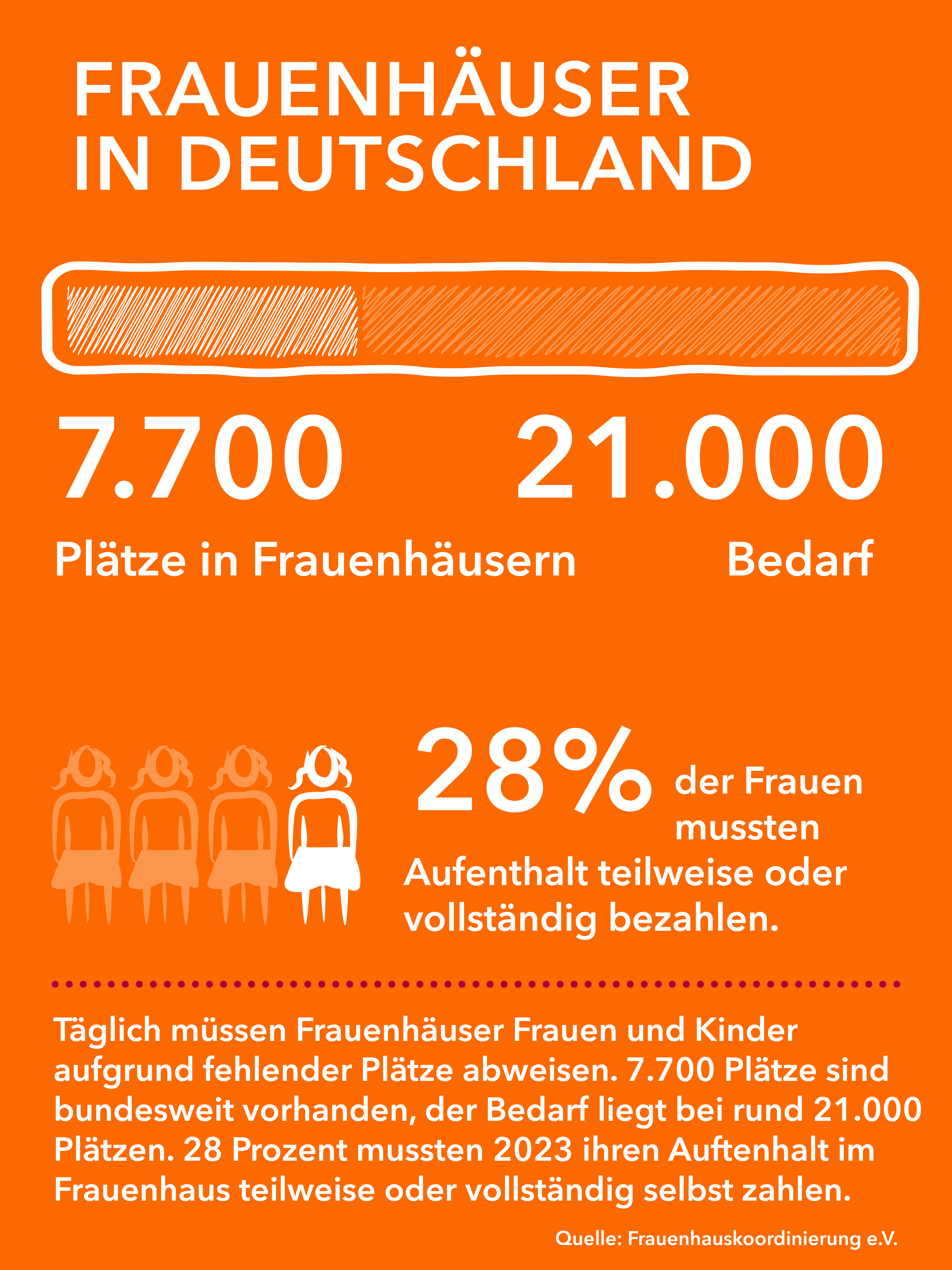 Der Fond der Frauenhauskoordinierung e.V. unterstütz Frauen, die sich den oft sehr kostspieligen Aufenthalt in einem Frauenhaus nicht leisten können. Konkrete Beispiele illustrieren, in welch bedrohlichen Situationen die Frauen sind und wie sehr sie auf die Hilfe aus dem Fond angewiesen sind.